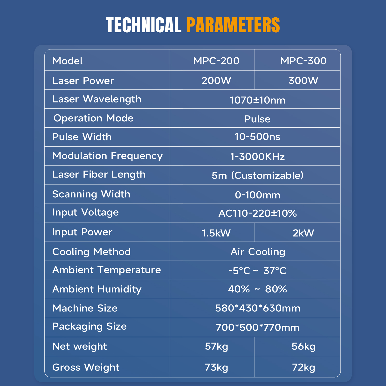 SFX APC Air Cooled Laser Cleaner Technical Specifications: