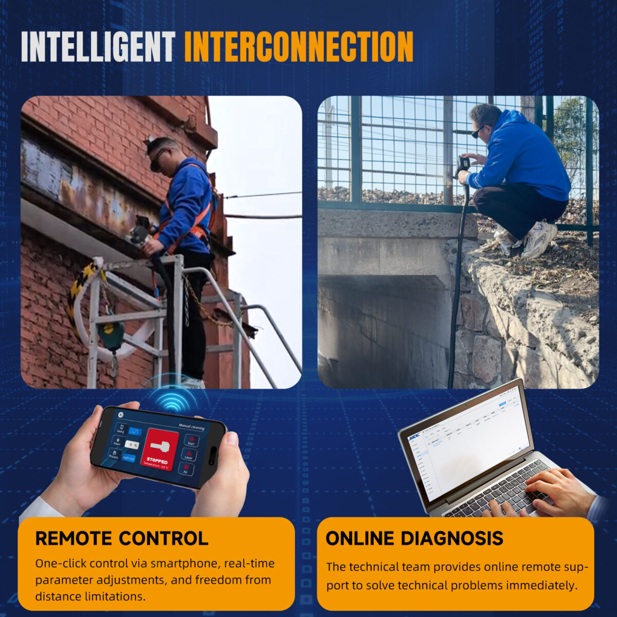 - Double-swing smart gun head, scanning width up to 100mm. High cleaning efficiency. 7 graphic modes, meet various operational requirements.