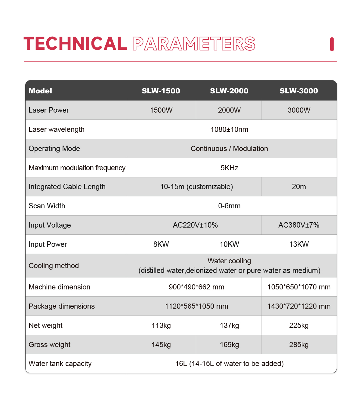 - Model: SLW-1500 SLW-2000 SLW-3000